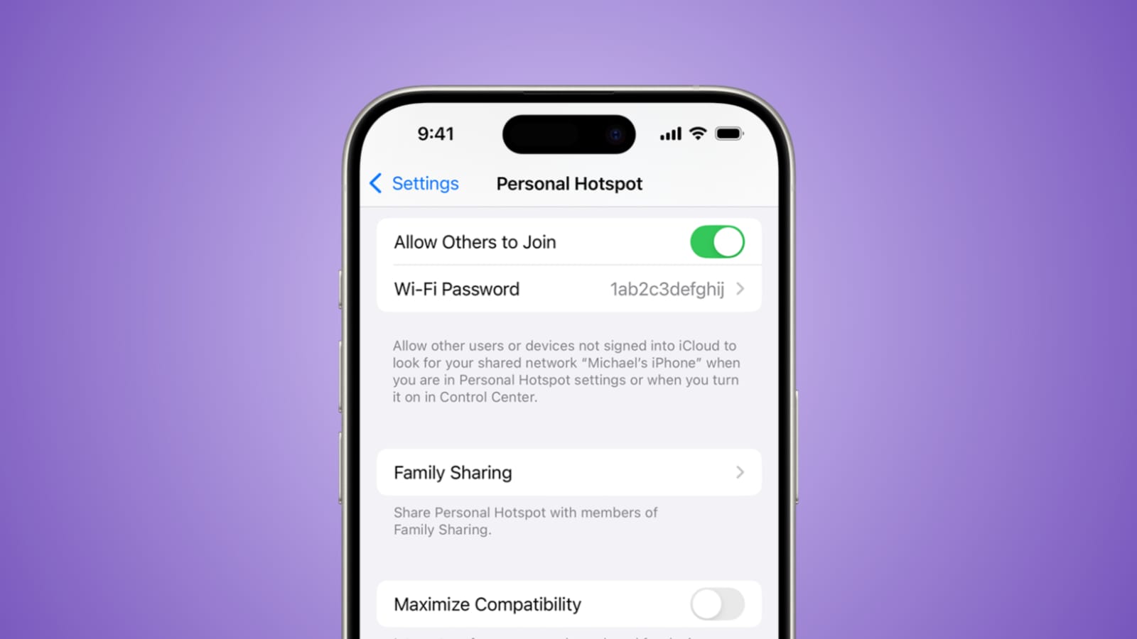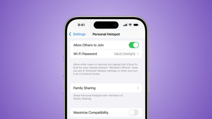 On iPhone 12 and later, turn on Maximize Compatibility. This switches your hotspot to the 2.4GHz band, allowing older devices to connect easily.